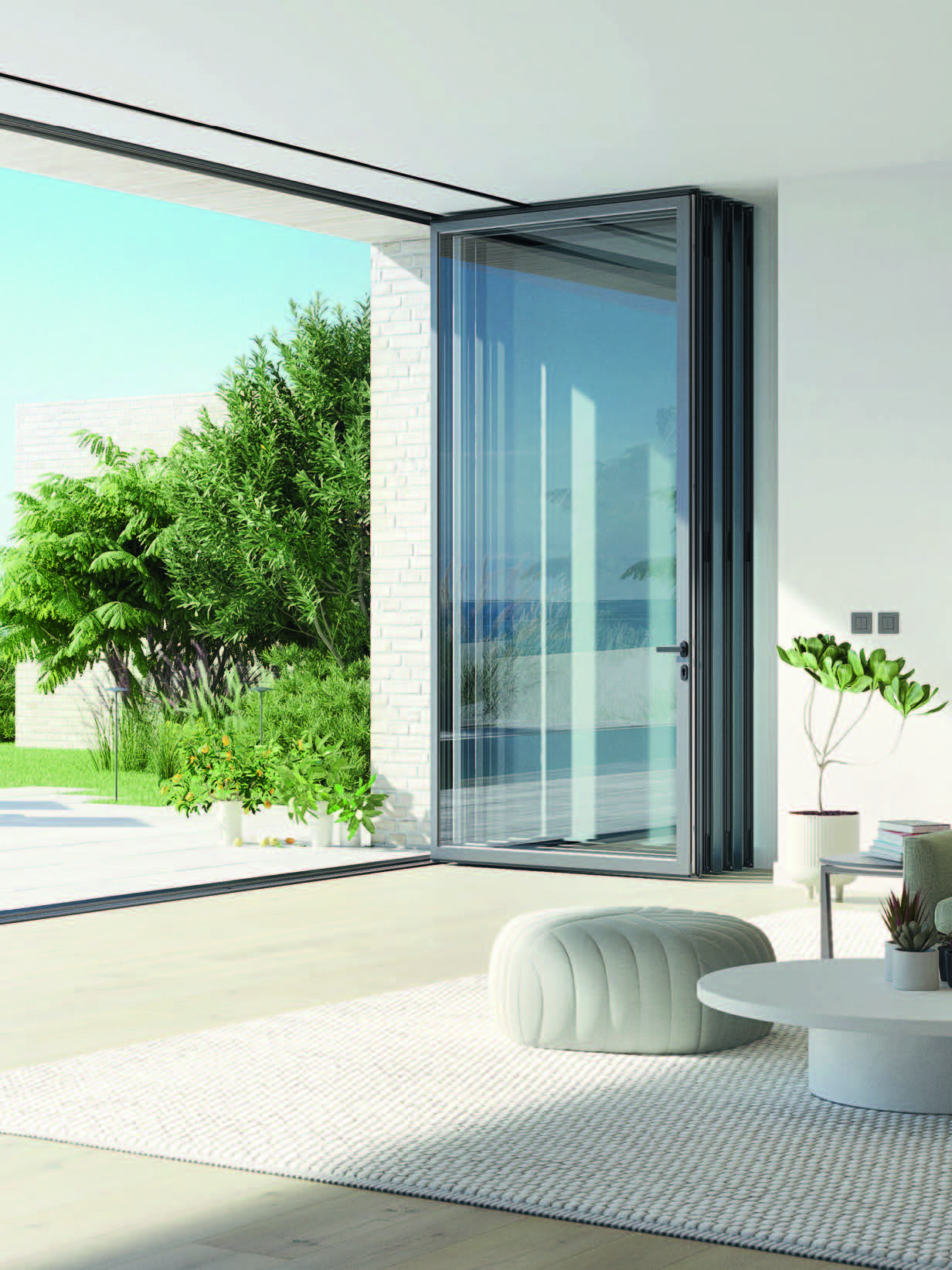 Schüco AS FD 75/90.HI est une plateforme de système très flexible assurant une très large liberté de conception, pour les portes repliablesde grandes dimensions.
