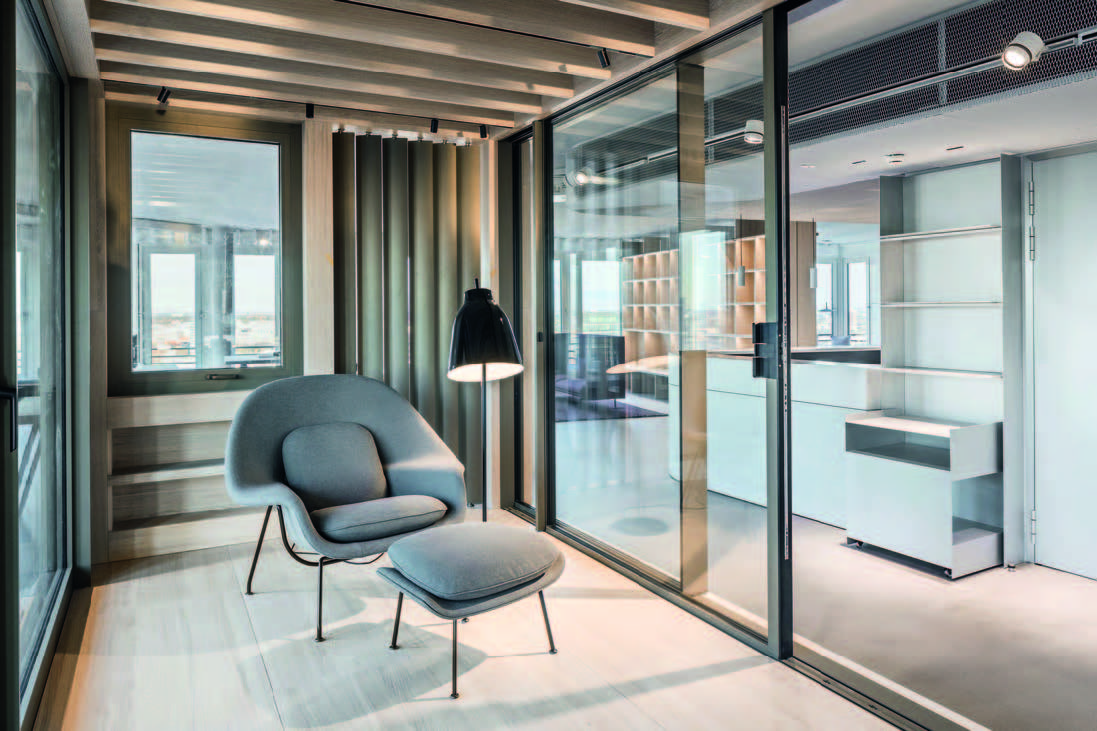 Schüco a créé une ligne de poignée de porte, de crémone de verrouillage et de poignée de tirage spécialement conçues pour les systèmes de portes repliables. Le design cubique épuré des ouvrants des portes repliables encadre les vitrages pour sublimer la transparence du vitrage.